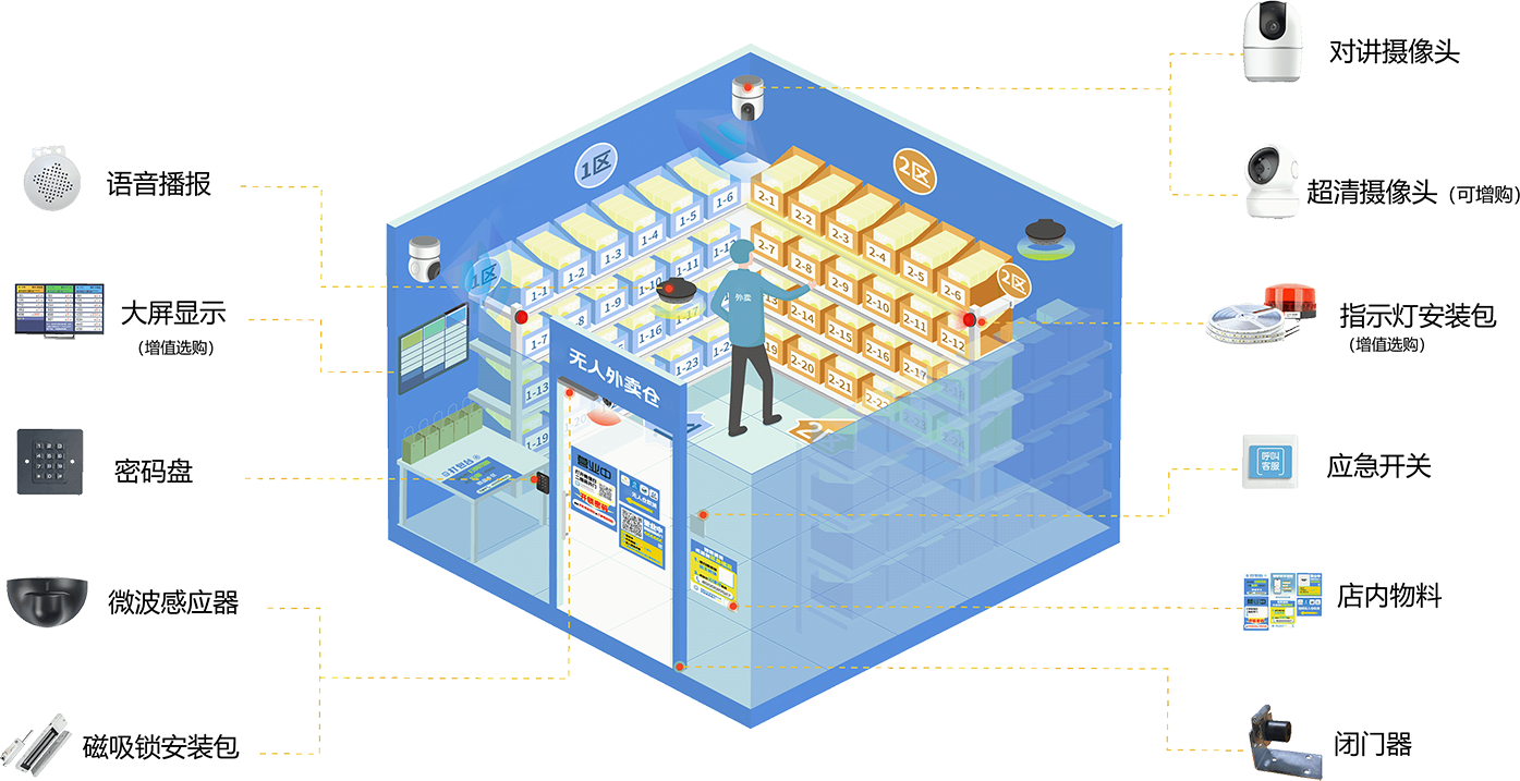 拣货大屏、履约红包,订单复核/检验、拣货灯控,智能门锁等多个自研创新设备